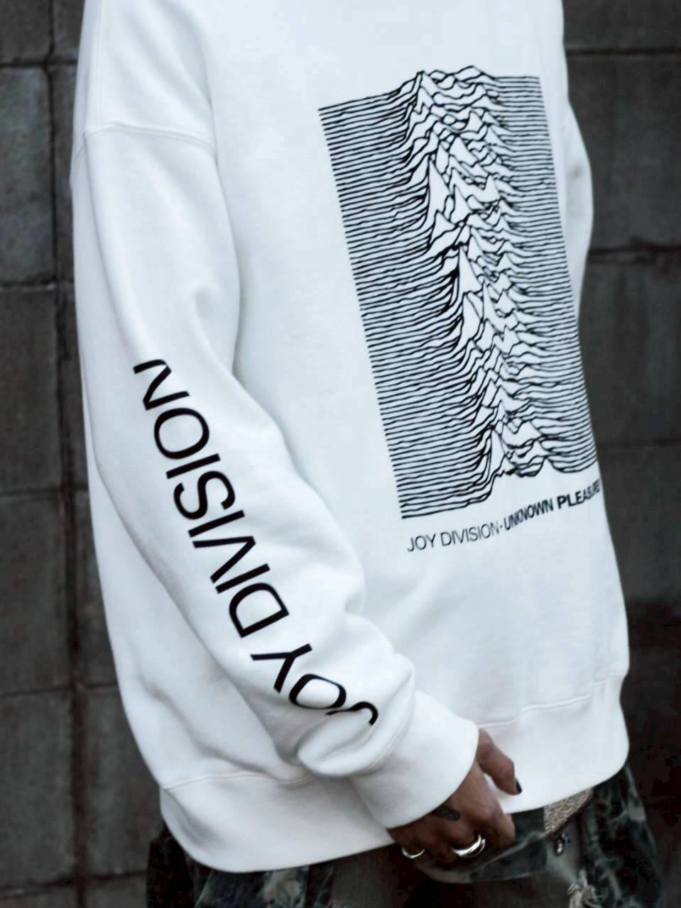 ポストパンクの金字塔とされるデビューアルバム『Unknown Pleasures』のグラフィックを用いたスウェット。