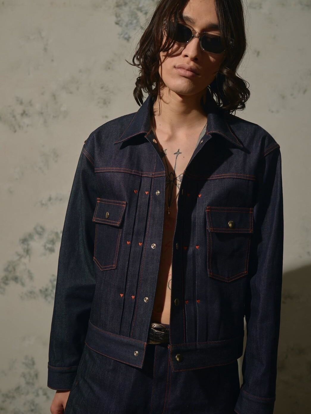 岡山県産のデニムを使用したリジッドデニムジャケット。