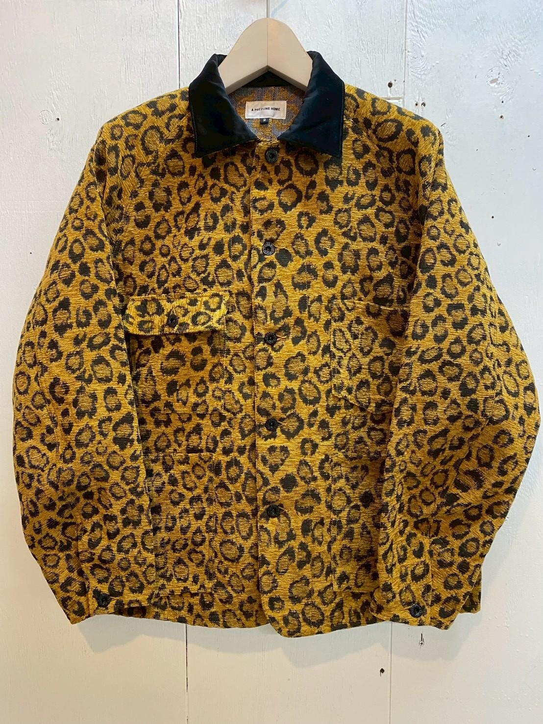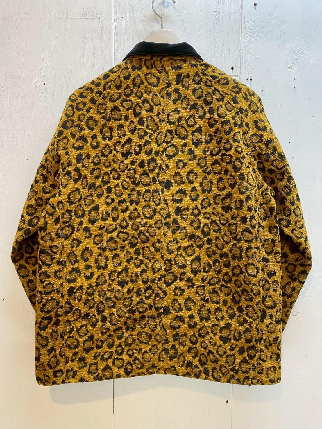 ワークスタイルとは相反するようなレオパード柄のジャカード生地を使用したカバーオール。