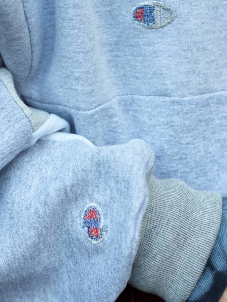 1990年代から2000年代のCHAMPIONの縦地の目のモデルを使用したパーカになります。